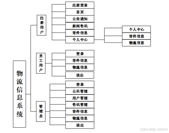 基于物联网的物流信息系统总体分为注册用户模块、员工用户模块和管理员模块。