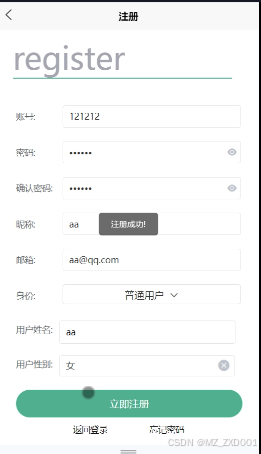 注册,您需要填写您的账户、密码、昵称、手机、邮箱和个人简介等信息,然后点击提交按钮,即可完成注册。请参考图5-2。