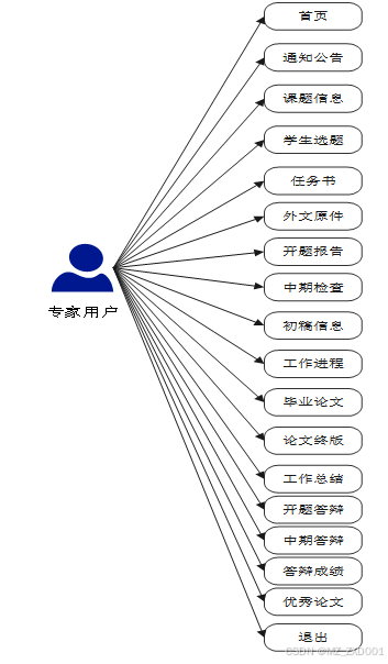 图3-4大学生毕业论文管理系统专家角色用例图