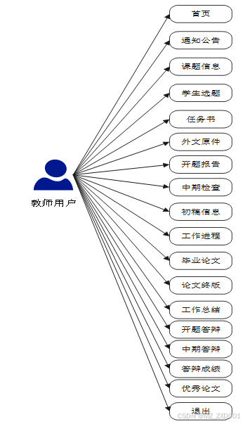 图3-2 大学生毕业论文管理系统教师用户角色用例图