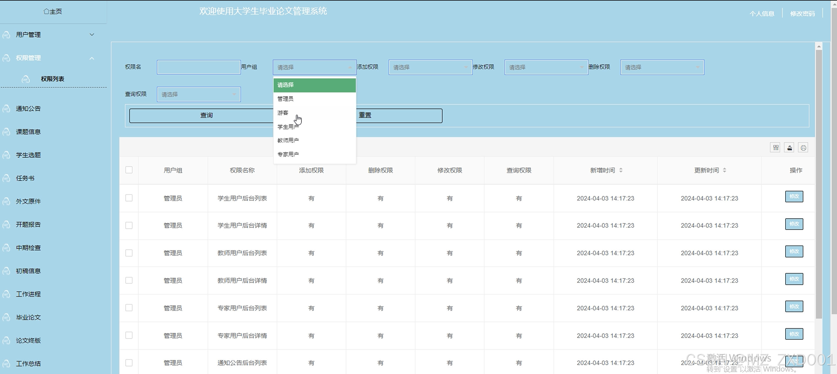 图5-3权限管理界面图