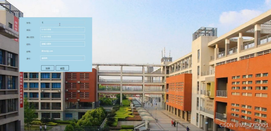 - 注册登录:学生用户按照要求填写相关信息后可以注册账号,然后根据注册是的账号密码进行登录。