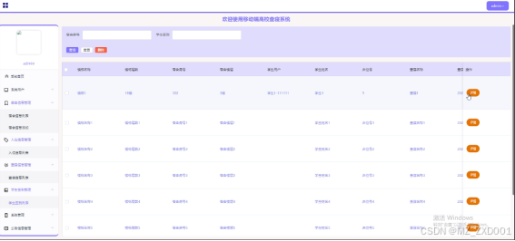 学生签到管理:可以查看到学生签到详情,进行查询,添加、删除等操作,界面如下图所示。