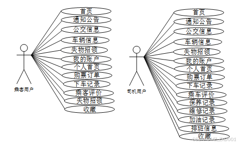ssm城市公共交通管理系统的完整UML用例图分别是图3-4和图3-5。