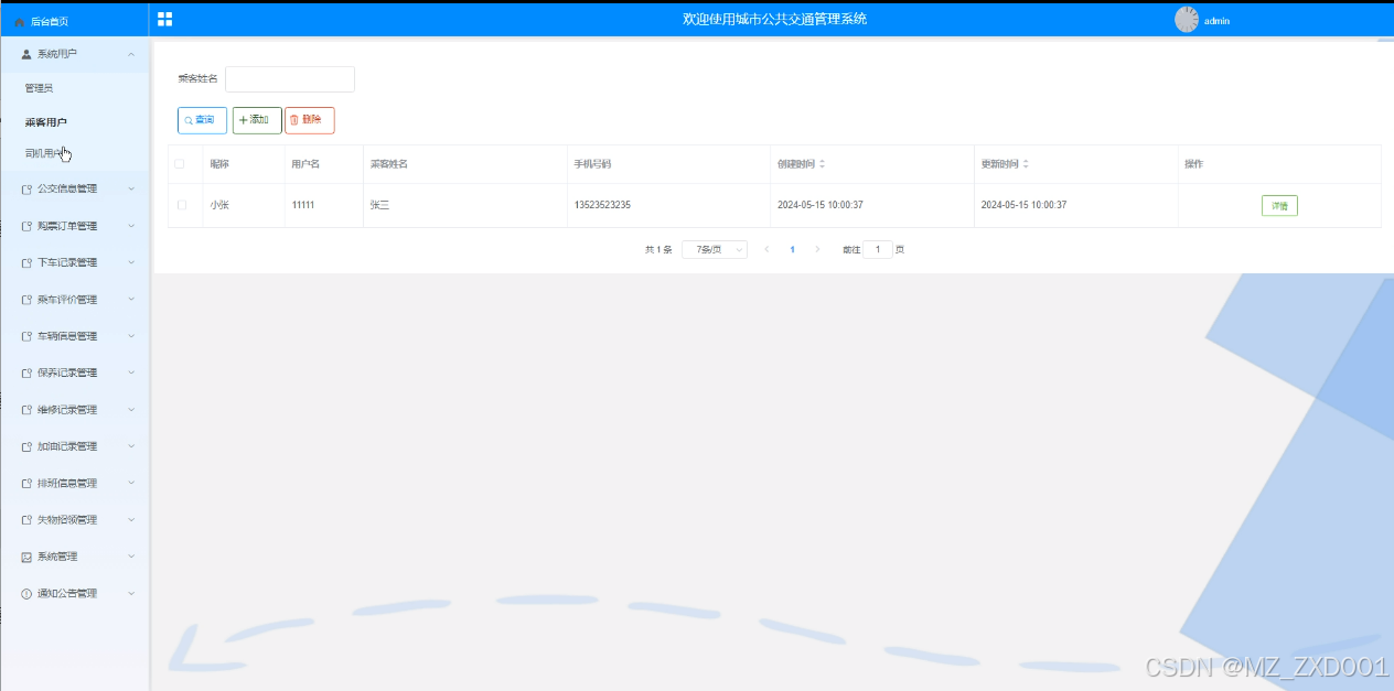 The SSM urban public transportation management system is developed using Java language and Java EE technology based on MVC mode. It is compiled using MyEclipse compiler and mainly uses Microsoft's MySQL relational database as the data storage medium. The system is developed in conjunction with front-end HTML+CSS technology.