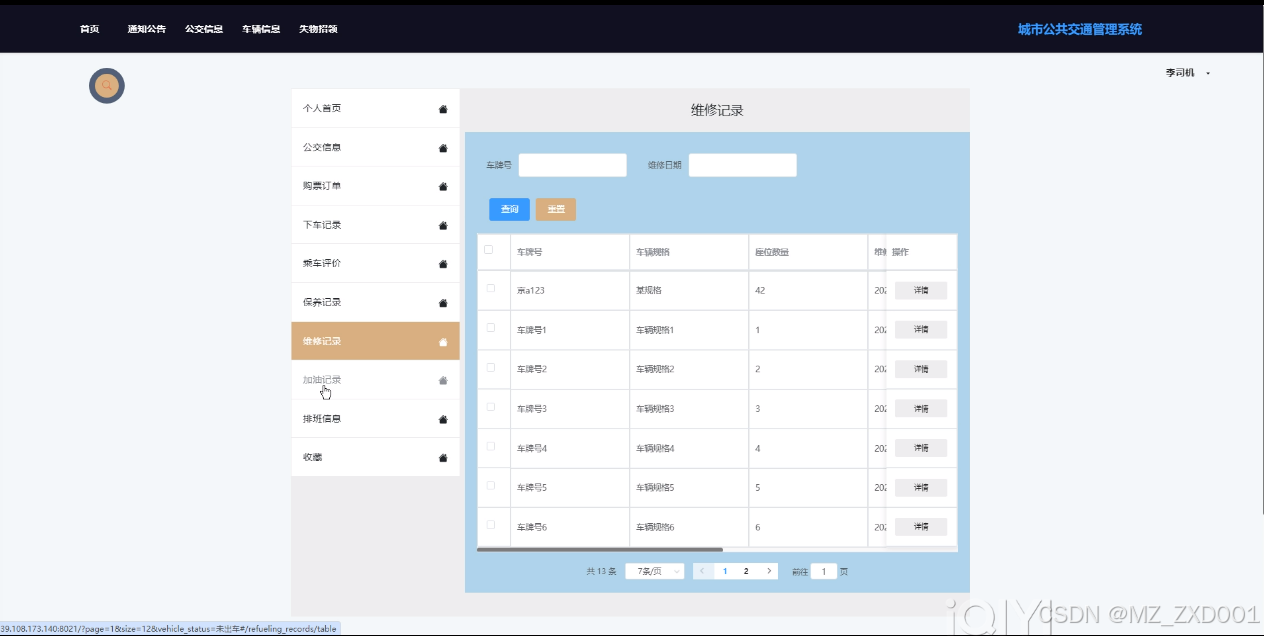 研究的意义在于,基于SSM+Vue技术的城市公共交通管理系统能够有效整合公交信息管理、购票订单管理、下车记录管理、乘车评价管理、车辆信息管理、保养记录管理、维修记录管理、加油记录管理、排班信息管理以及失物招领管理等多个核心功能,为城市公共交通的智能化管理提供强有力的支持。该系统不仅能够提升公交公司的运营效率,降低运营成本,还能够为乘客提供更加便捷、舒适、个性化的出行服务。