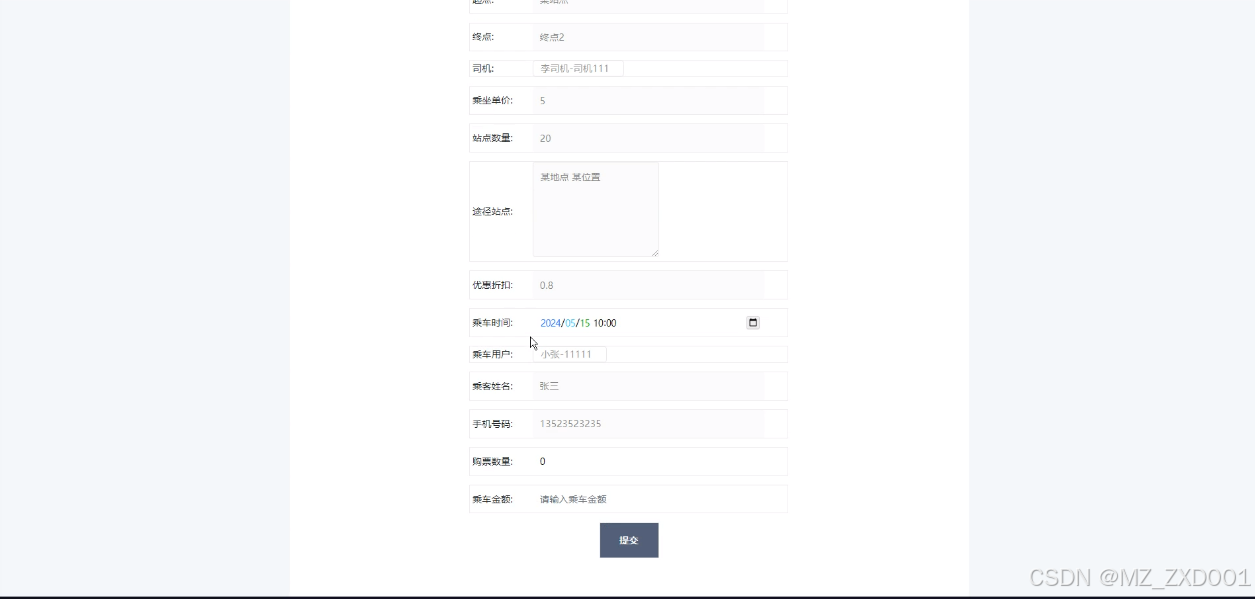| 测试流程 | 1)乘客用户点击购票订单,然后点击后并填写信息。 2)点击进行提交。 |