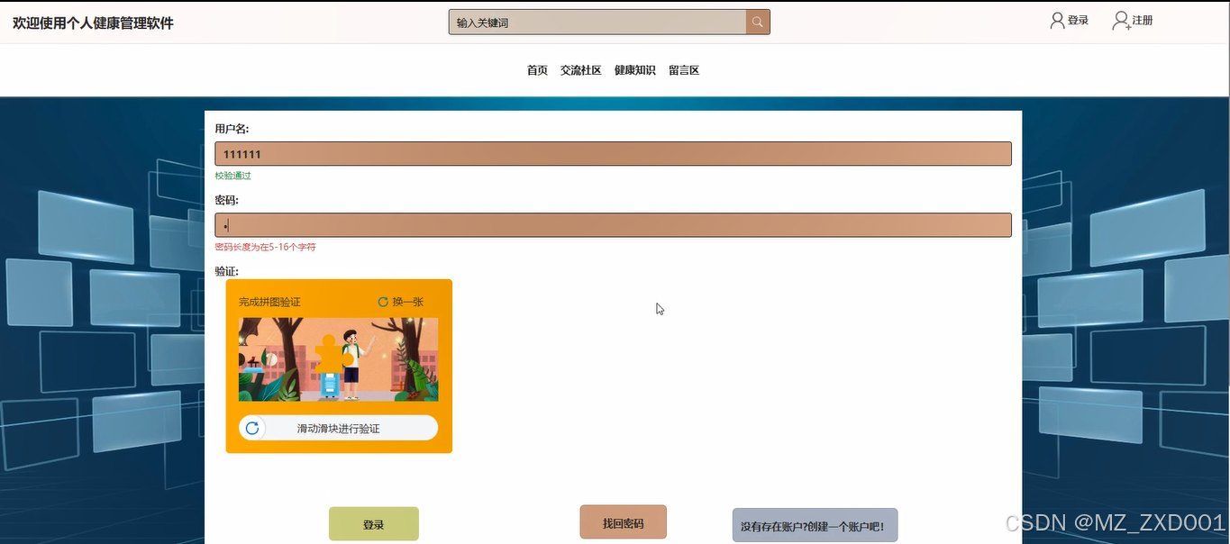 | 预期结果 | 用户名和密码正确的时候,跳转到登录成功界面,反之则显示错误信息,提示重新输入 |
