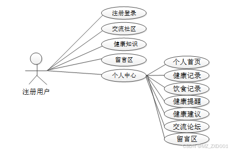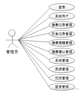 通过2.3功能的分析,得出了本基于SSM+VUE个人健康管理软件的角色用例图: