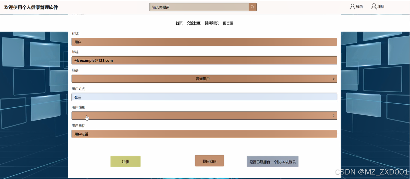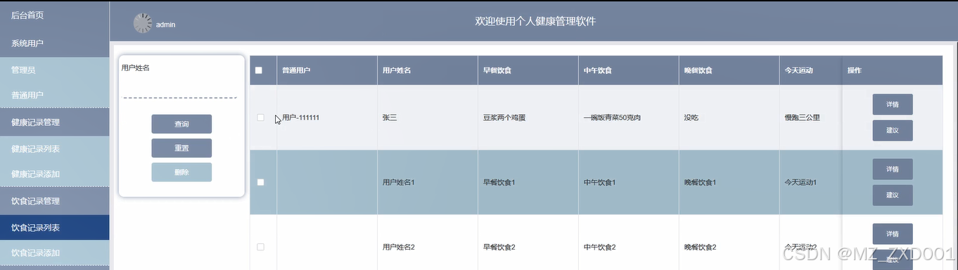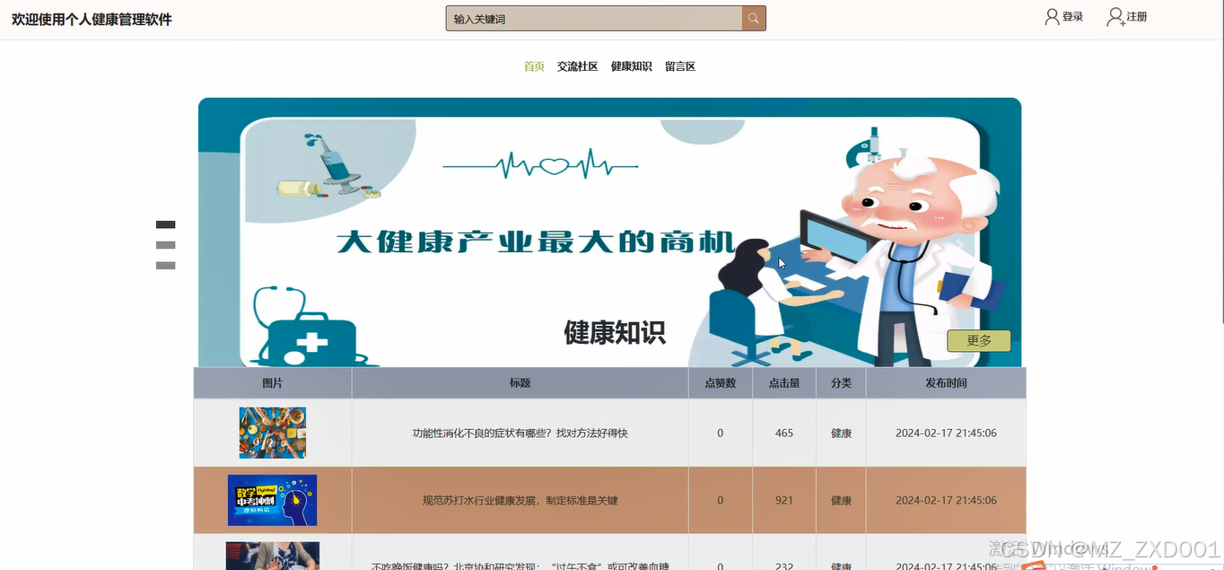 关键词:移动互联网、个人健康管理、SSM、VUE
