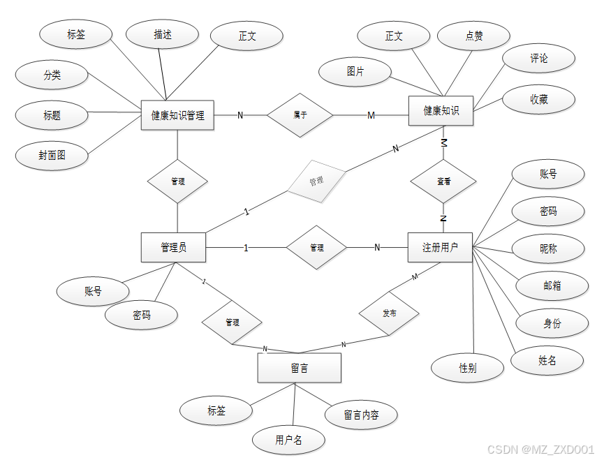 下面是整个基于SSM+VUE个人健康管理软件中主要的数据库表总E-R实体关系图。