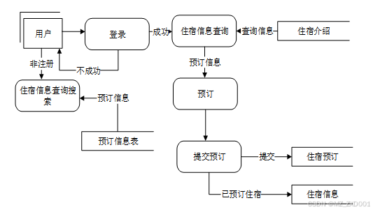 开发农家乐管理系统最主要的一个目的就是实现住宿的预订,系统的数据流图如下所示。
