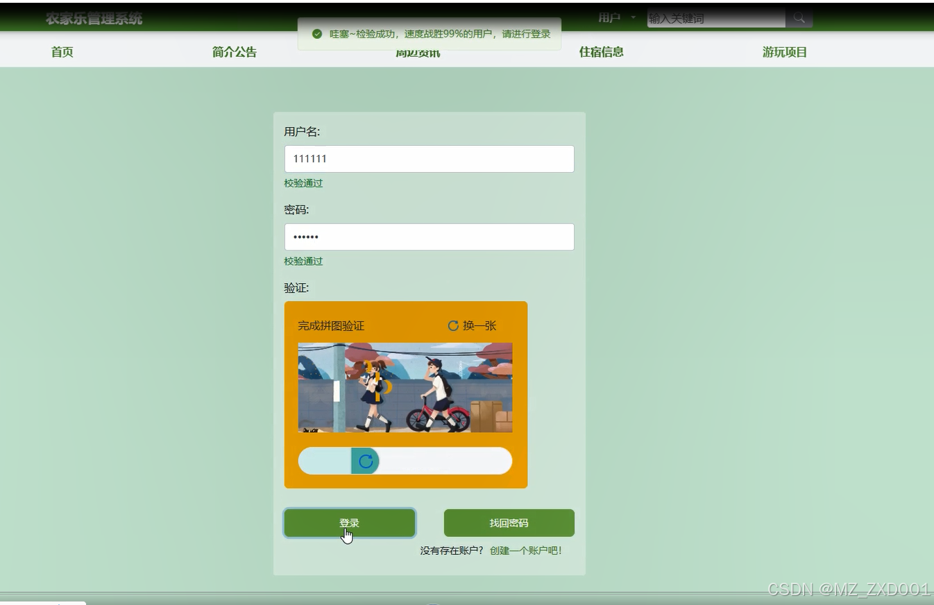 The system aims to provide a comprehensive and integrated solution, covering core functions such as accommodation information management, accommodation reservation management, project type management, play project management, and play reservation management for rural tourism. Through the powerful backend support of the SSM framework and the user-friendly front-end interface of the Vue framework, rural tourism managers can more easily manage their business while providing customers with a better booking experience.
