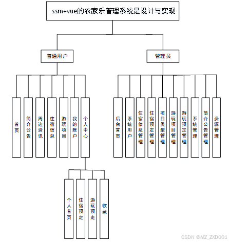 农家乐管理系统主要划分为了普通用户管理模块和管理员管理模块这两大部分,具体功能描述如下: