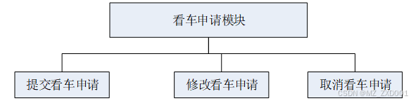 二手车之家网站最主要的一个功能就是二手汽车看车申请,其模块功能结构,具体的结构图如下: