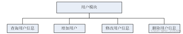 本系统的用户包括前台和后台两种用户,模块的功能基本是相同的,前台用户比后台多了一个注册功能,所以以用户模块的结构图为例进行分析,用户模块结构图为例进行分析,如下图: