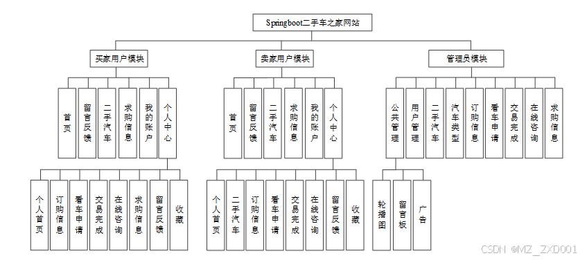 二手车之家网站我划分为了买家用户模块、卖家用户模块和管理员模块这三大部分。