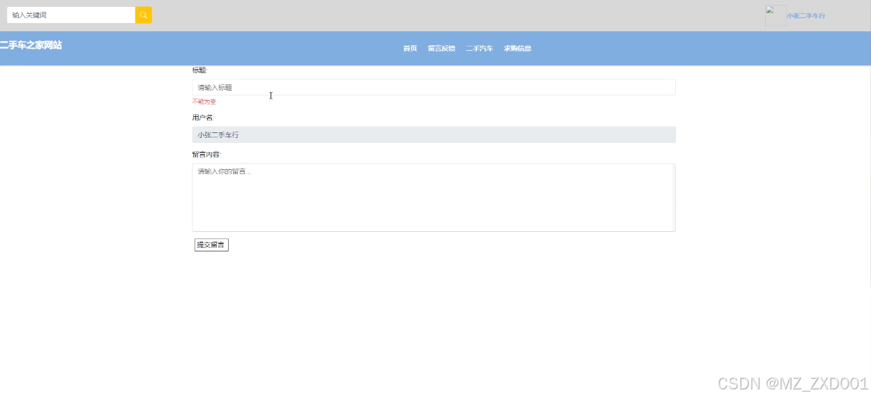 | 预期结果 | 提交以后,页面首页会显示新的留言反馈信息 |