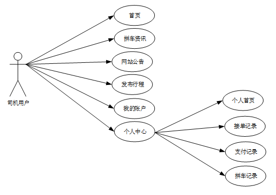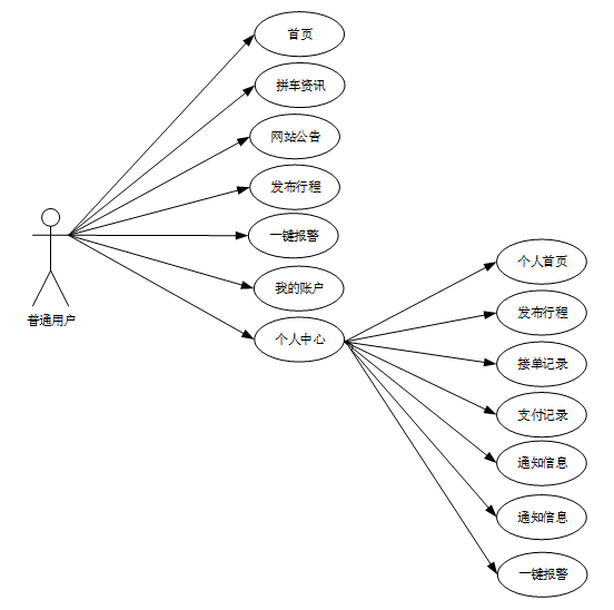 武汉纺织大学团惠拼车系统中普通用户用例图如图2-1所示: