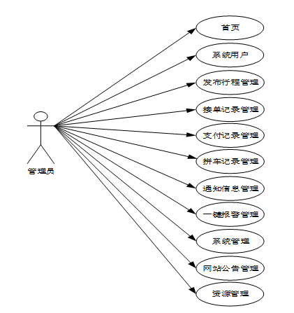 管理员可以查看后台首页、系统用户、发布行程管理、接单记录管理、支付记录管理、拼车记录管理、通知信息管理、一键报警管理、系统管理、网站公告管理、资源管理等,并且可以根据需要进行相应的操作。管理员功能界面如下图所示。