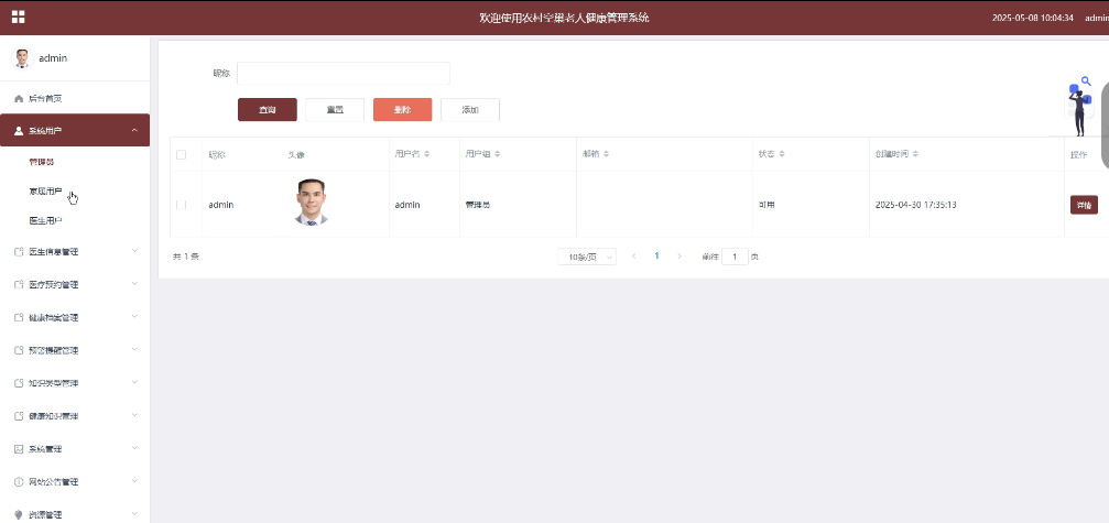 系统界面简洁友好,操作流程简单,用户无需复杂培训即可上手。系统功能模块化设计,包括医生信息管理、在线预约、健康档案管理、用户管理等,便于用户快速完成操作。且系统支持多角色操作,管理员、医生和家属用户均可根据权限进行相应操作,提升了管理效率。
