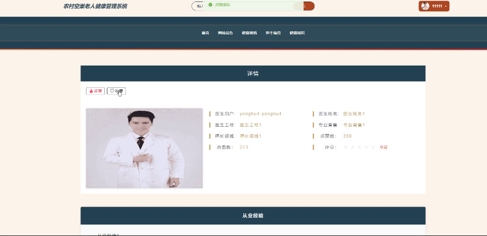 (6)医生信息:展示所有后台发布的医生信息,点击查看医生详情 还可发表评论,点赞、收藏以及发表评论。