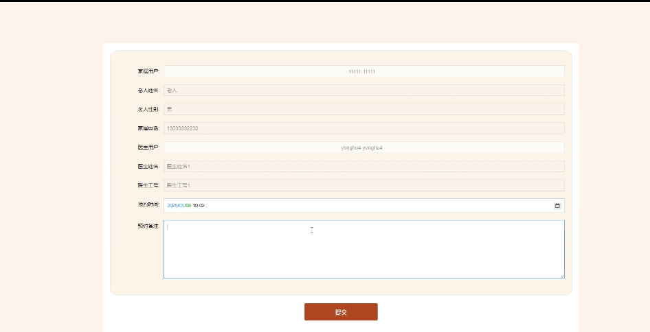 (4)医疗预约管理:包含医疗预约信息列表,并可进行修改提交。