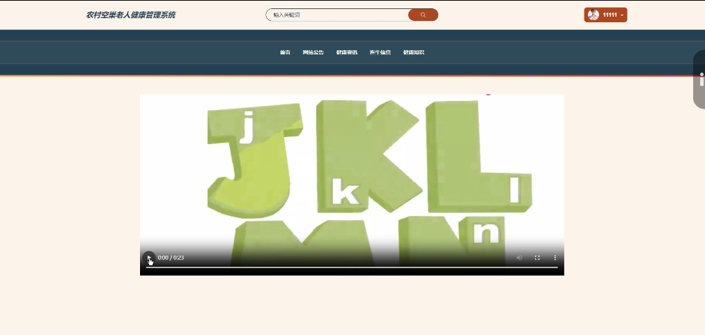 (7)健康知识:展示所有发布的健康知识,可进行关键字搜索、可查看知识详细信息、可点赞、收藏,以及观看视频学习。