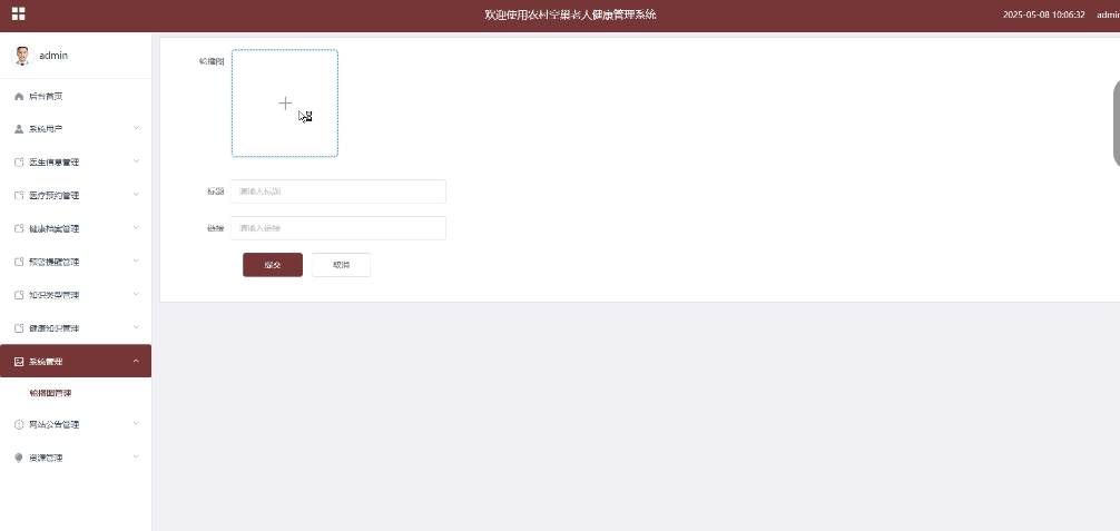 系统管理:主要管理首页的轮播图数据。系统管理界面如下图所示。