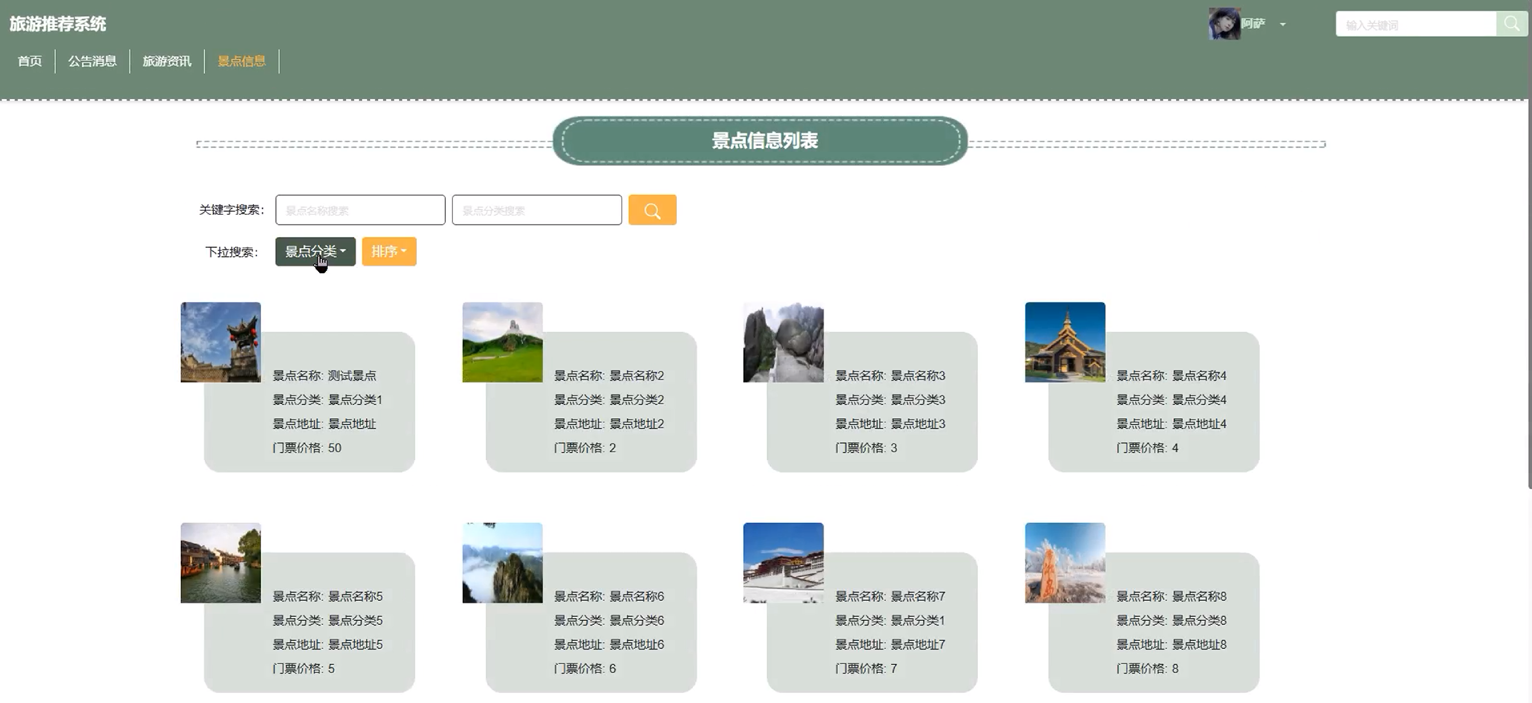 (3)景点分类管理:管理员点击可查看景点分类信息,同时可对景点分类进行增删改查。