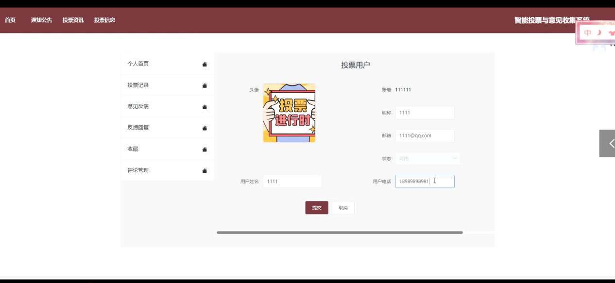 展示了用户的基本信息、积分和参与的投票记录。用户可以快速查看和管理自己的投票记录、意见反馈、收藏和评论等内容。个人首页界面如下图所示。