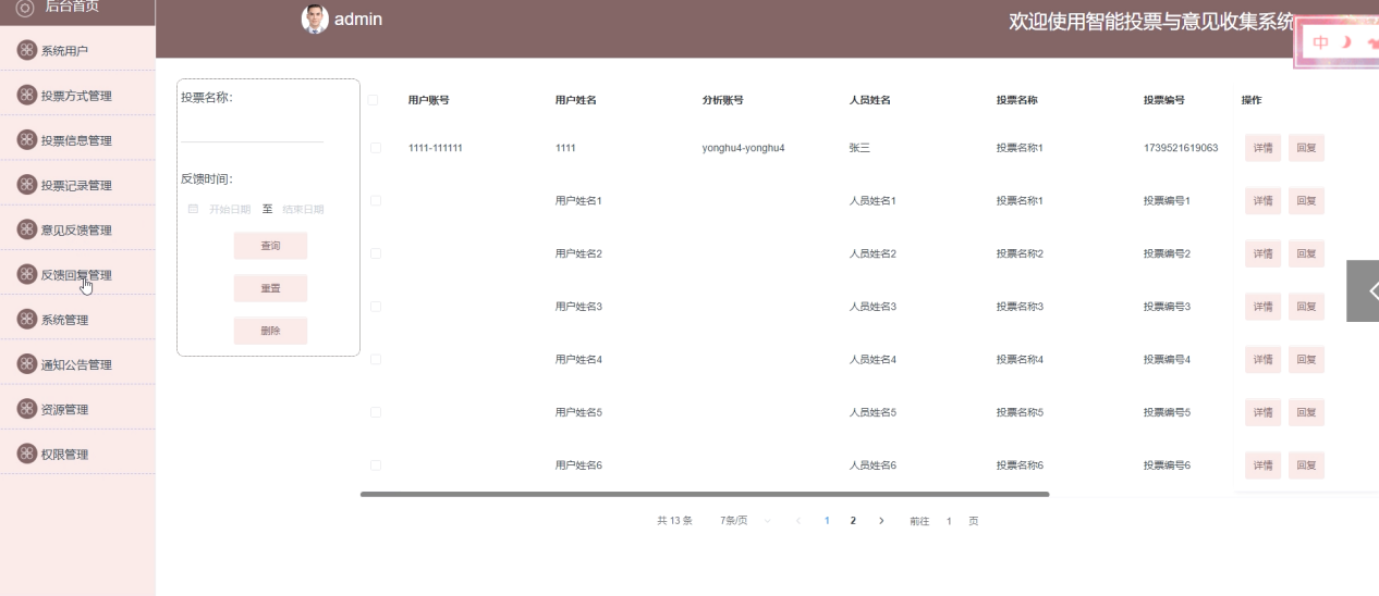 意见反馈管理界面允许管理员查看和处理用户提交的反馈信息。管理员可以浏览用户的建议、问题和投诉,进行分类和优先级设置,并对反馈进行回复或跟进。意见反馈管理界面。