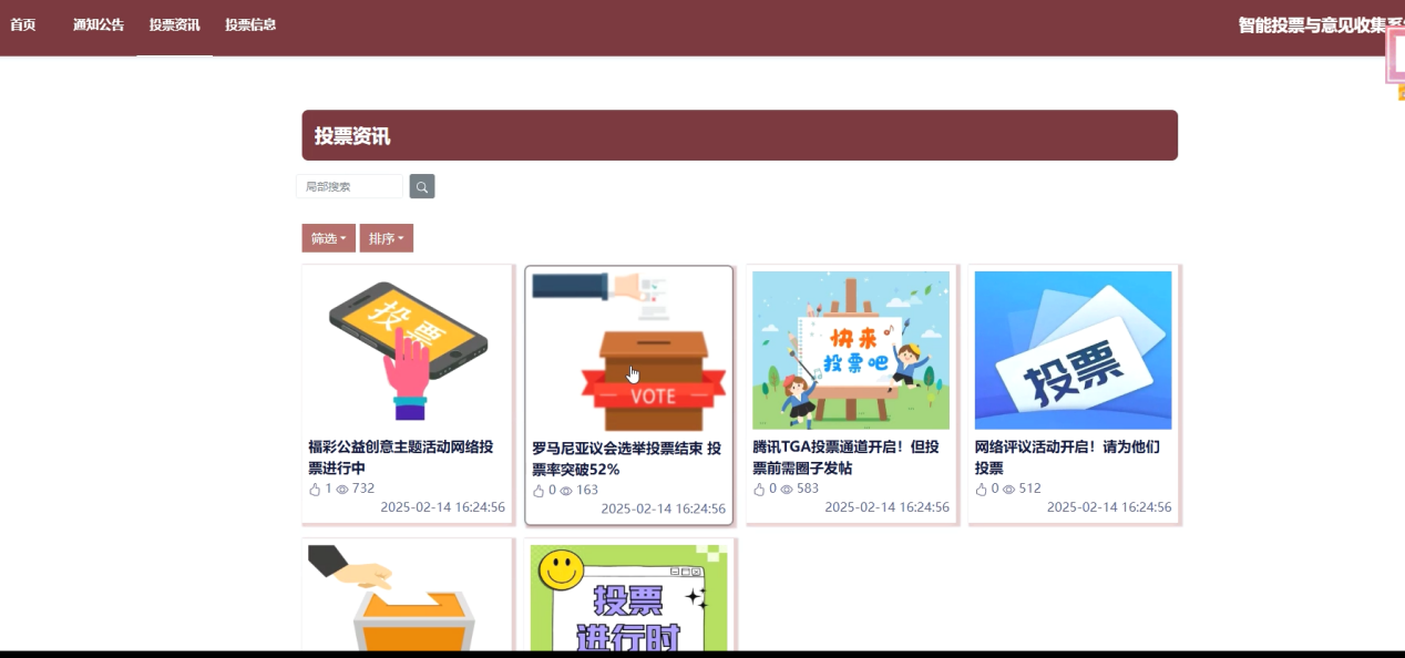 首页:首页是用户进入系统后的起始页面,展示最新的通知公告和投票资讯。