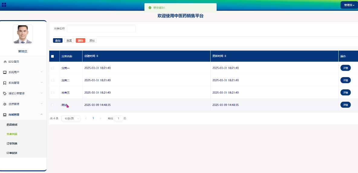 - 商城管理:商城管理功能允许管理员优化药品展示和分类列表,确保信息准确且易于查找;处理订单的各项操作,如确认、发货等,保证及时性;并跟踪订单配送进度,确保物流透明顺畅。这些功能提升了运营效率和顾客满意度。