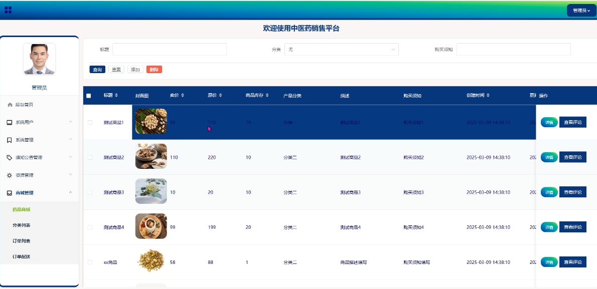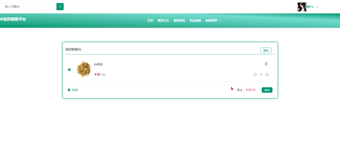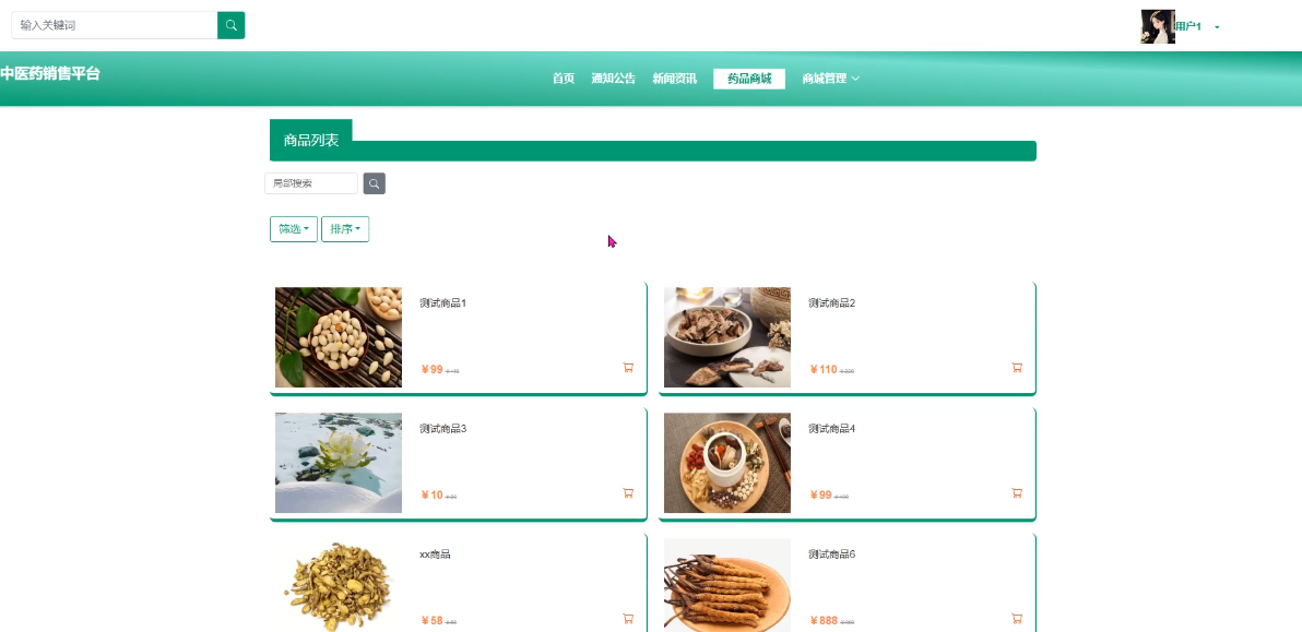 - 药品商城:药品商城是平台的核心部分,用户可以在这里浏览各类中药材及相关产品,通过分类筛选、搜索等功能找到所需商品,并查看详细信息后加入购物车或直接购买。