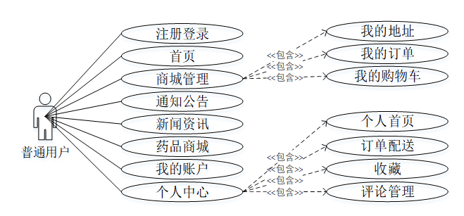 普通用户角色用例如下图所示。
