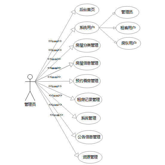 系统用户:管理系统中的各类用户,包括管理员、租客用户、房东用户的信息查看、权限设置等。