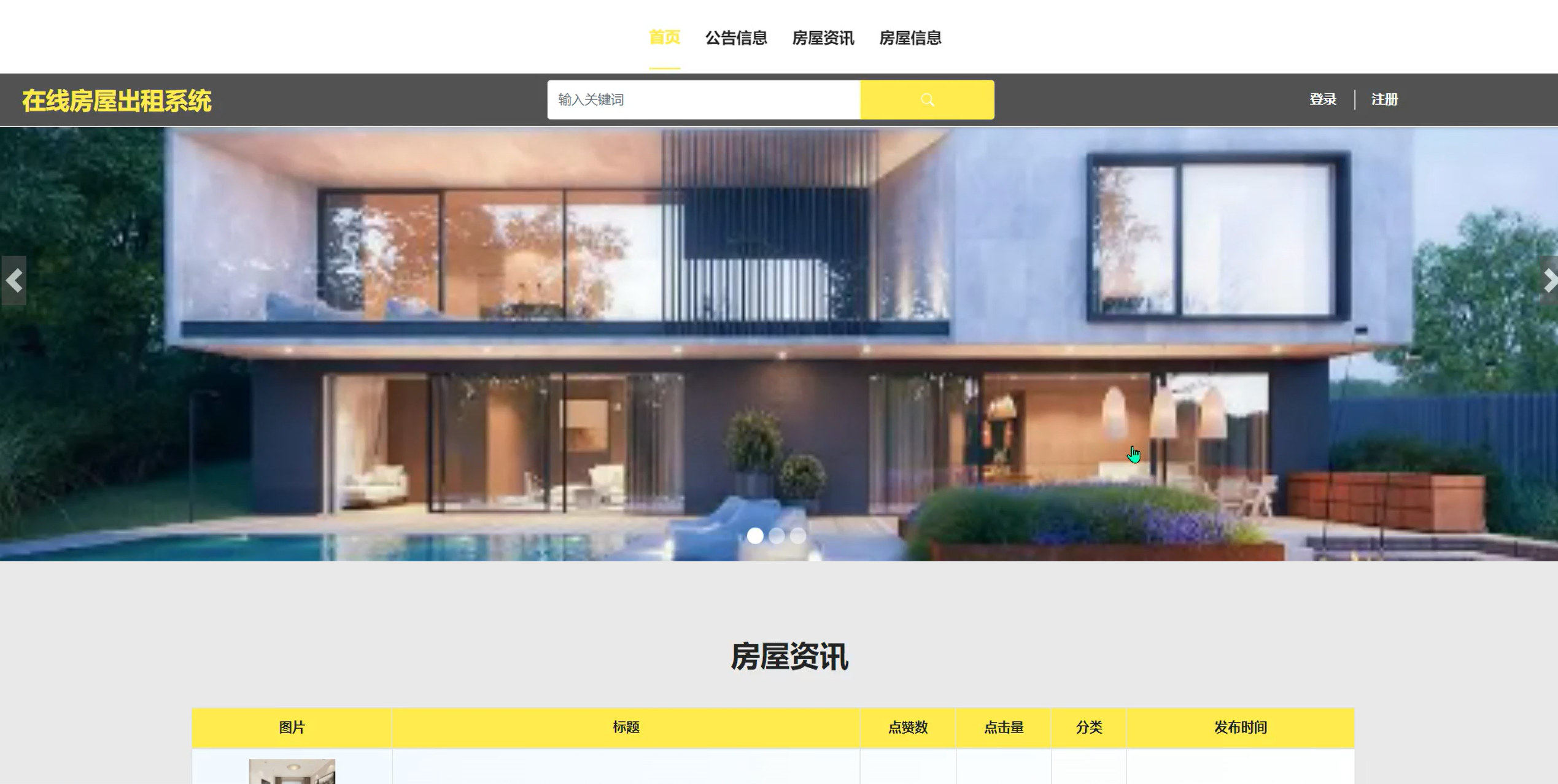 首页:提供快速导航链接,如热门房屋推荐、最新公告信息等,便于租客快速了解系统状态和进行日常操作。