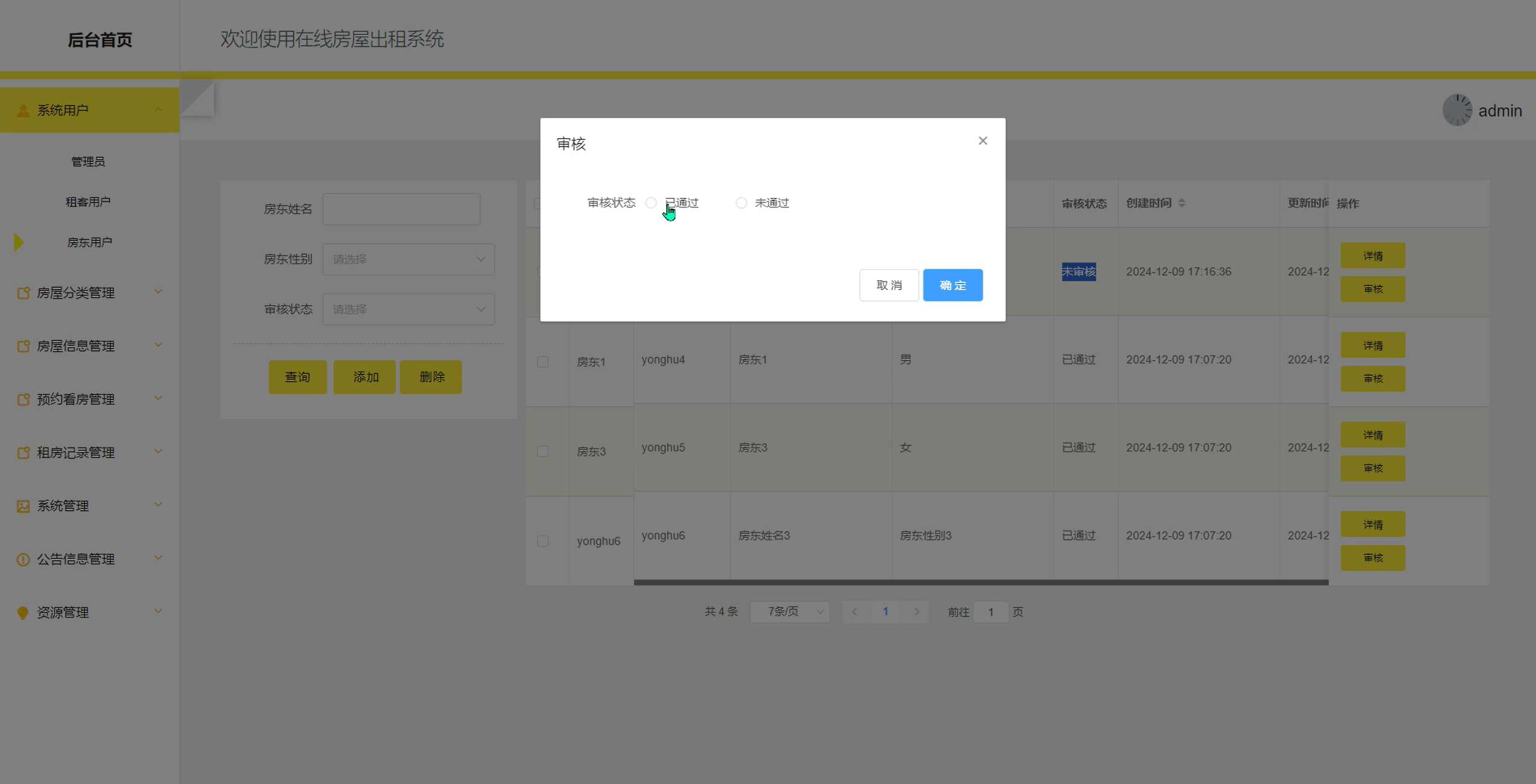 房屋信息管理:审核和管理房东发布的房屋信息,确保信息真实准确。