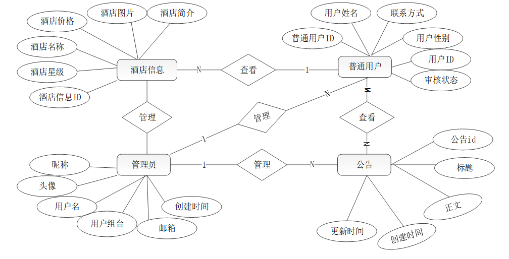 - 酒店信息管理:管理酒店信息,包括酒店介绍、房间类型、价格等。