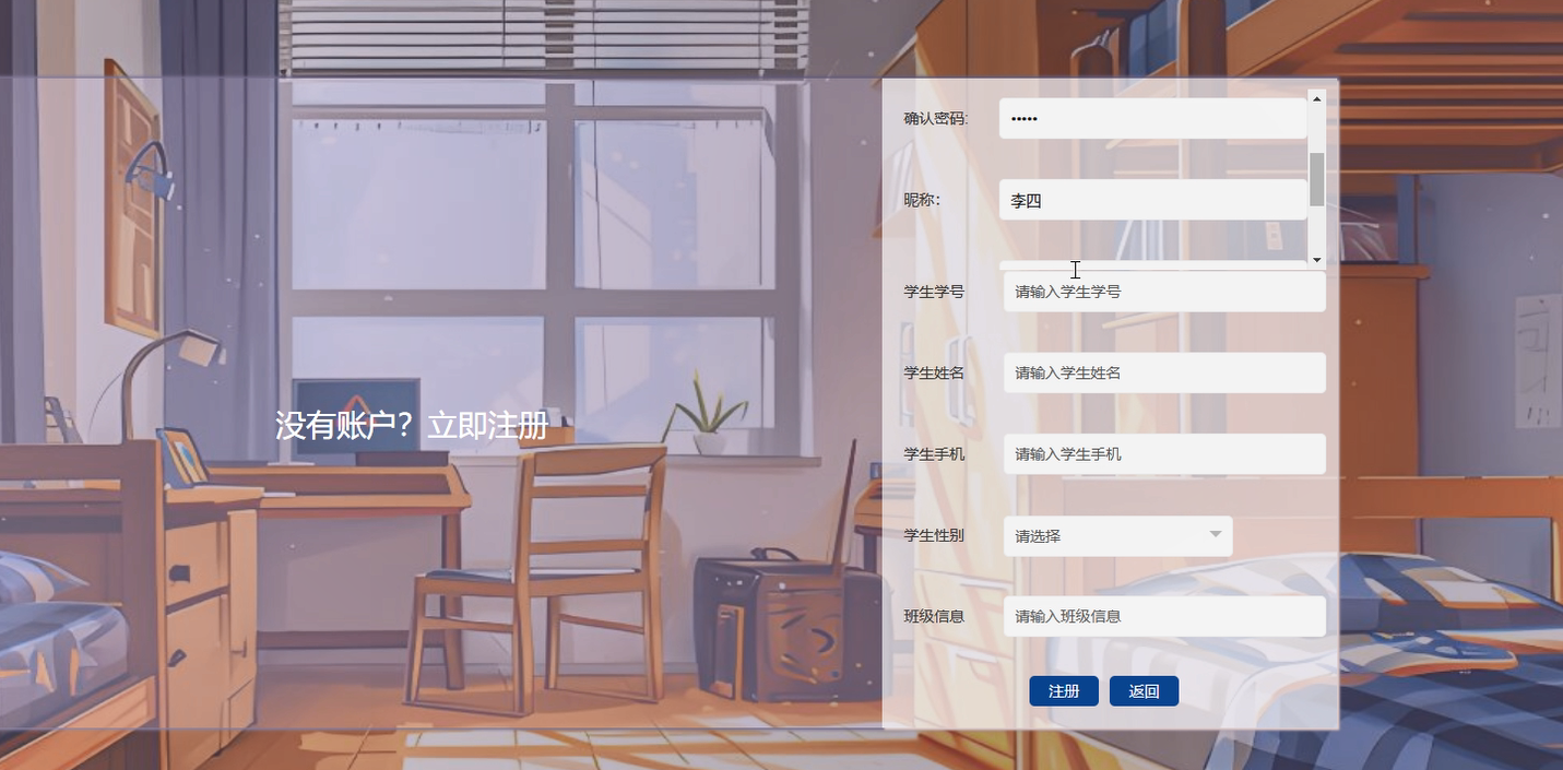 晚归记录:管理员登记学生晚归记录详情,可以进行增删改查的操作。