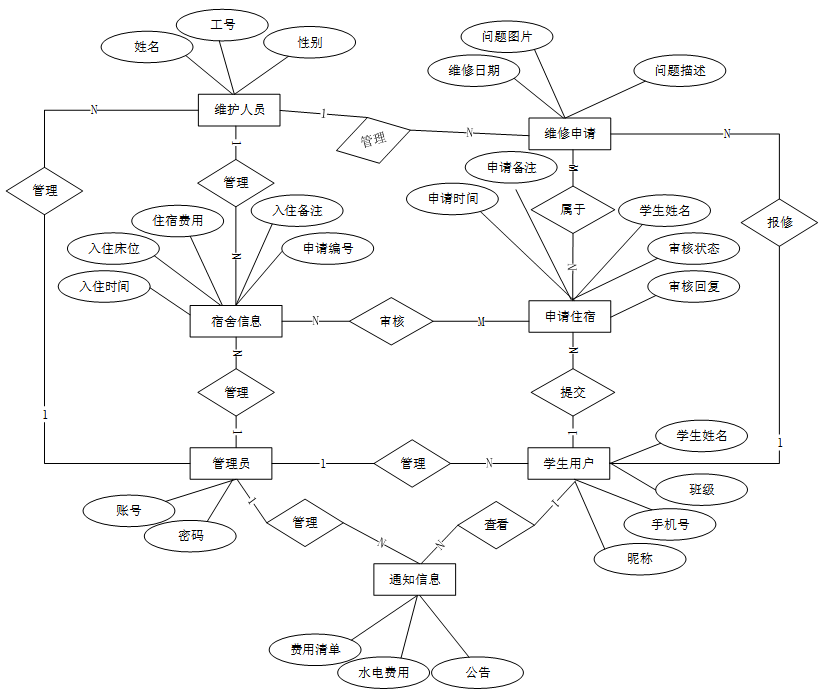 这些功能涵盖了宿舍管理系统的各个层面,旨在为学生、维护人员和管理员提供高效的管理工具,提升宿舍的管理效率和信息化水平。