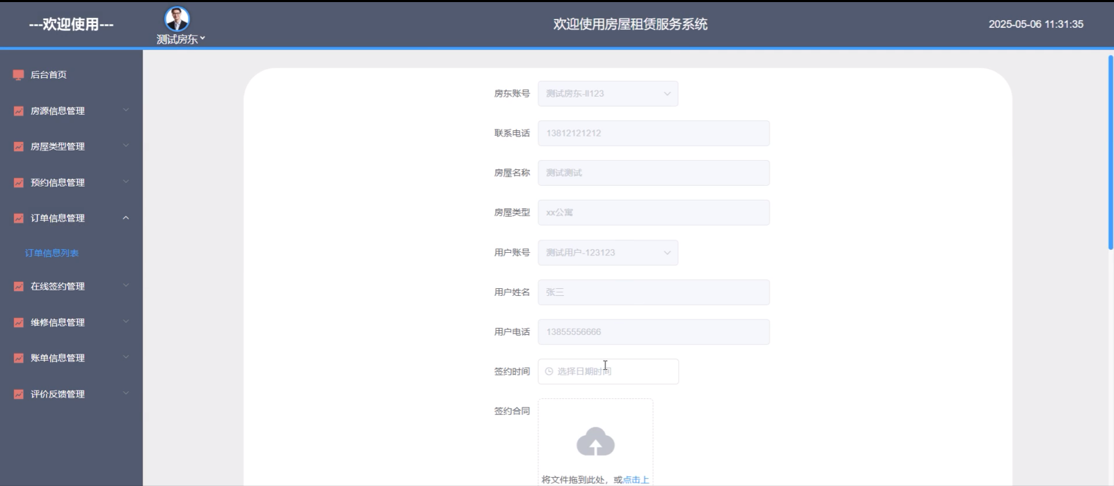 在线签约管理:房东可以对入住申请审核通过的用户发送签约合同,并进行在线签约。