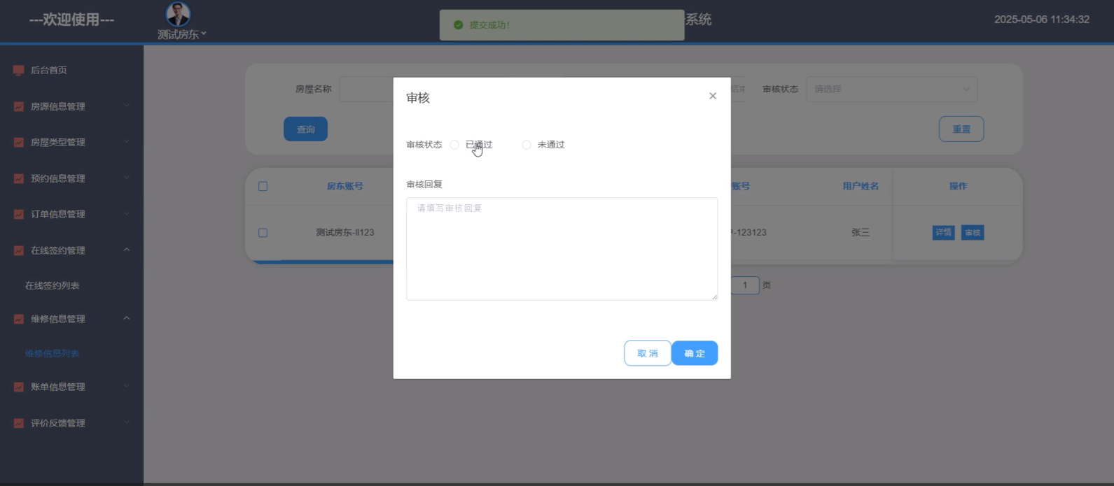 维修信息管理:房东可以查看用户上报的维修信息,并进行审核处理。
