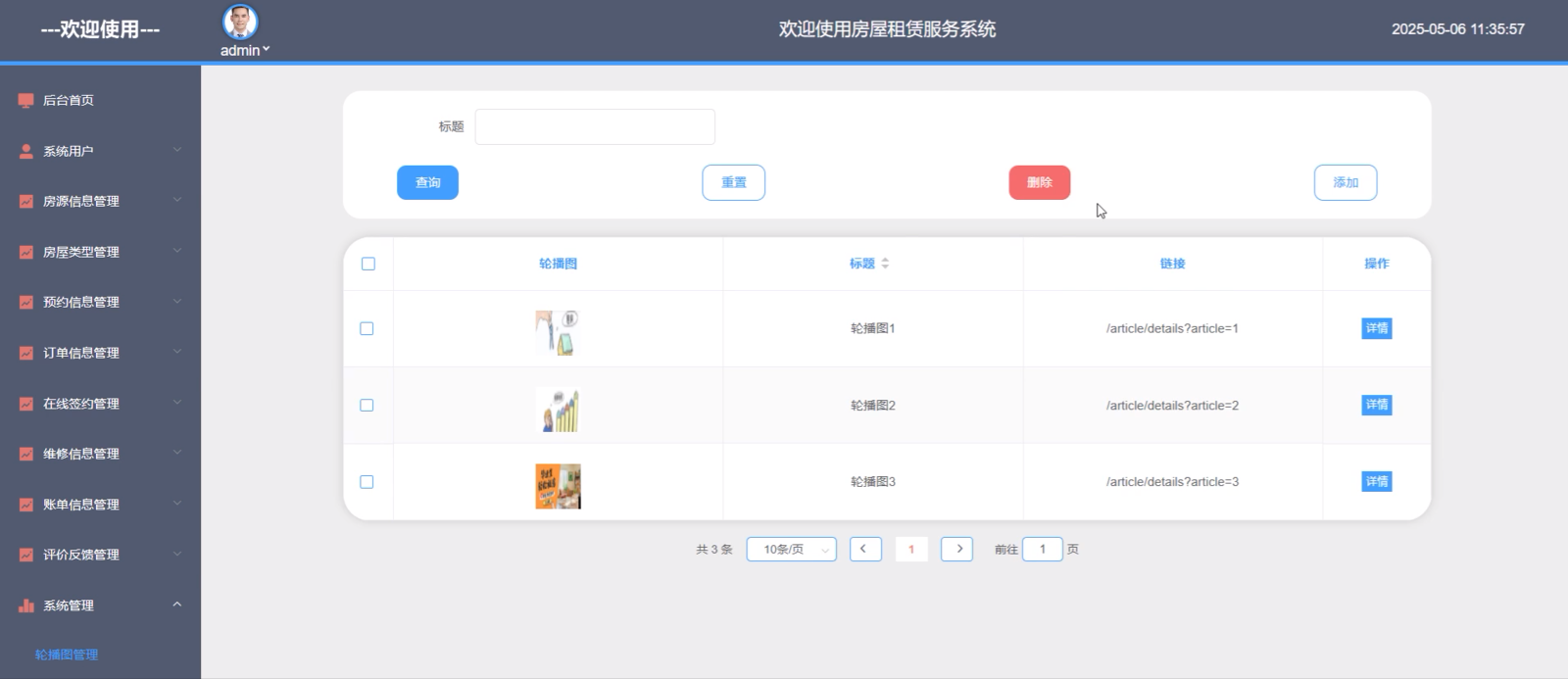 系统管理:管理员可以管理平台的轮播图、网站公告等内容。