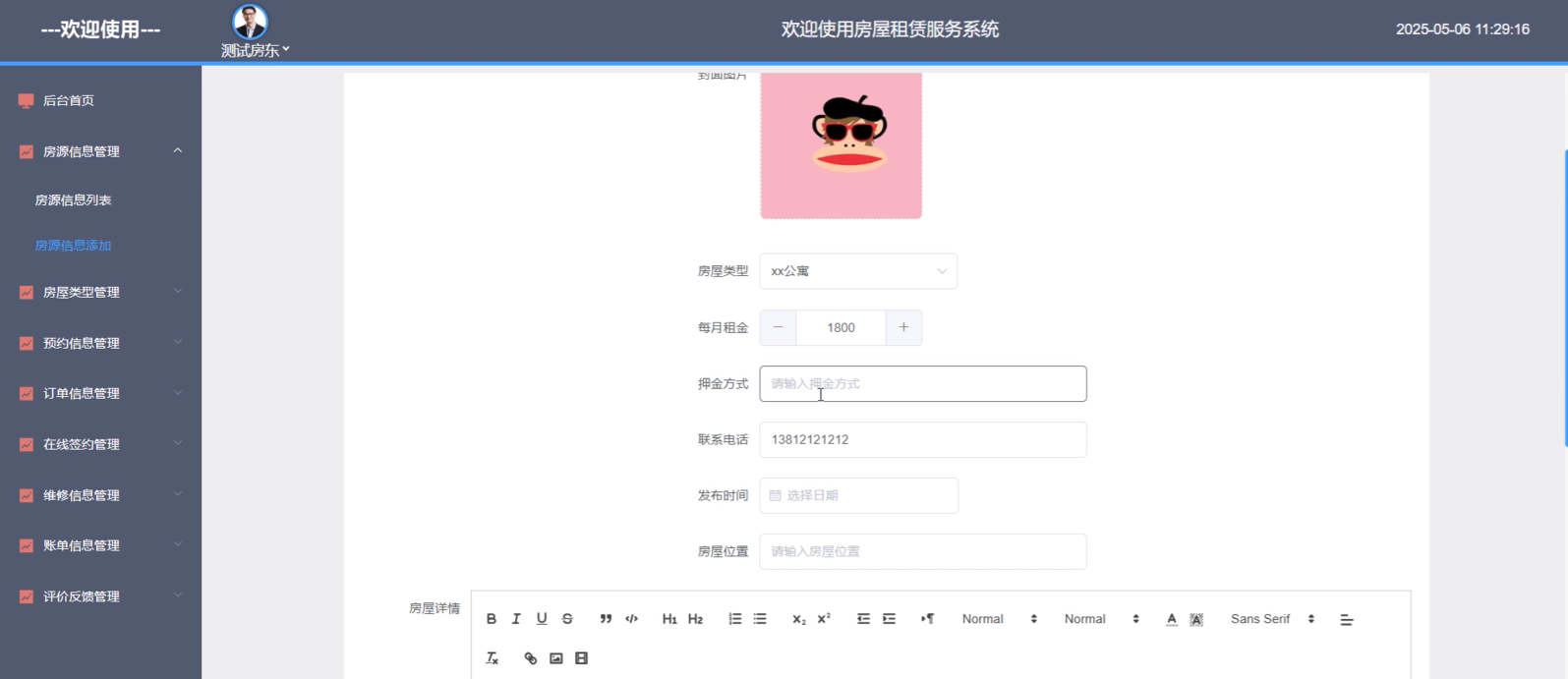 房屋类型管理:房东可以管理房屋类型,确保信息准确。