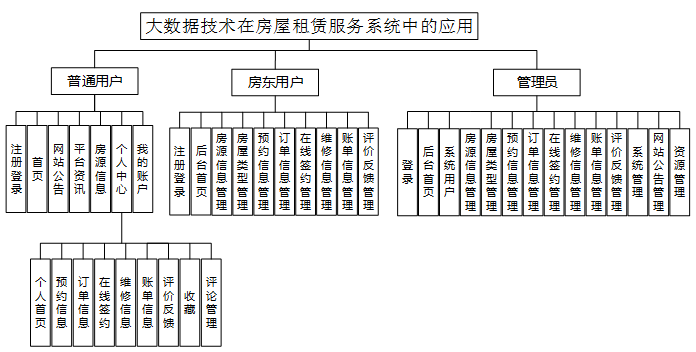 房屋租赁服务系统划分为了前端模块和后端模块两大部分。