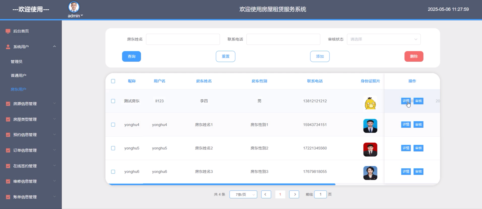 房源信息管理:管理员能够查询、查看房源详情,并审核房东发布的房源信息,同时查看房源的评论。