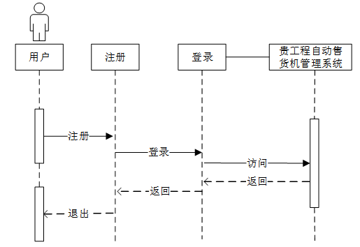 用户通过注册模块发送注册请求,系统完成注册后返回确认信息。随后,用户通过登录模块发送登录请求,系统验证用户信息后允许访问目标系统。用户完成操作后可选择退出,系统终止会话。注册时序图,如图4-3所示。