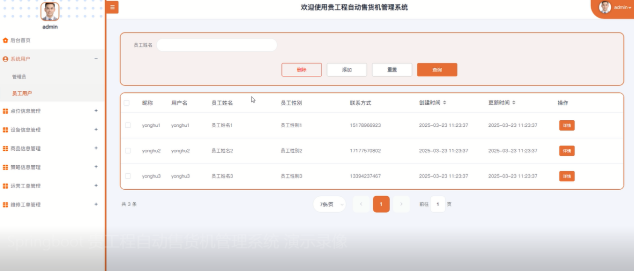 3.系统用户管理:管理员管理系统用户权限,包括创建、修改和删除管理员和员工用户等操作。